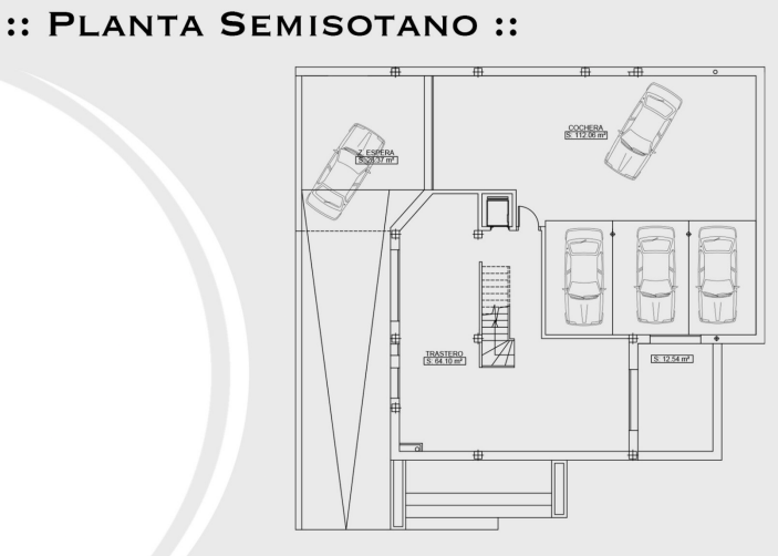 Planta Sótano: Garaje con capacidad para varios vehículos y espacio adicional para almacenamiento o un gimnasio.